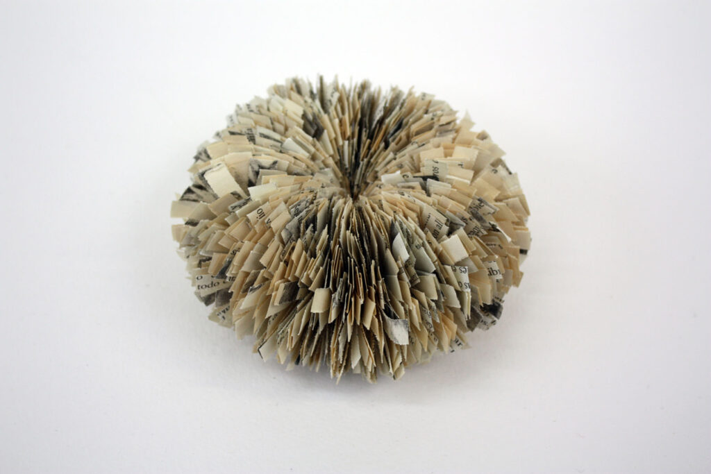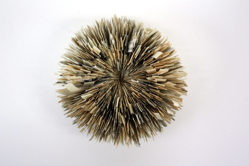 Cuando el saber se ha asimilado, se transforma y muta en otra cosa. Esta obra ha adquirido cualidades que evocan formas orgánicas. Son formas mutantes, que nos recuerdan la realidad híbrida que vive en la actualidad el libro.